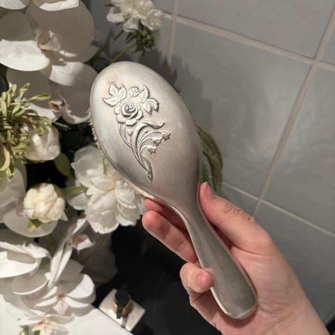 Vintage koristeellinen alpakka hiusharja