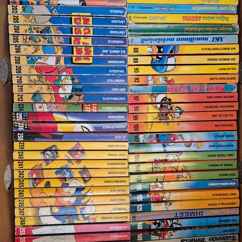 Aku Ankan taskukirjoja alkaen osasta 1 Mikki Kiipelissä ja viimeinen on osa 492. Lisäksi Taskarin teemanumeroita ja erikoispainoksia.