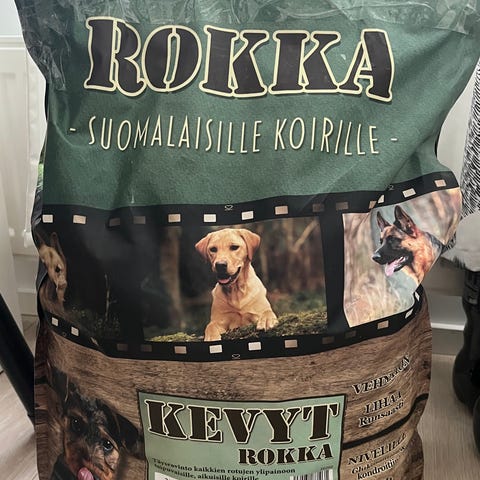 Eukanuba Adult kuivaruoka koiralle, tarkoitettu aikuisille suurille ja erittäin suurille roduille (L-XL). Pakkauksen koko 15 kg. Ruoka on suunniteltu täysravinnoksi täysikasvuisille koirille, ja se sisältää muun muassa kananlihaa proteiinin lähteenä. Pussissa on merkinnät painoluokille 25–40 kg ja yli 40 kg koirille. Valmistuspäivä ja parasta ennen -päiväys on merkitty pakkaukseen.