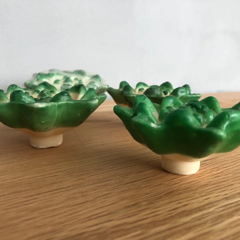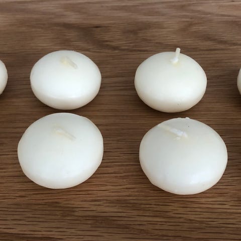 Neljä tummanpunaista led-kynttilää, toimivat moitteettomasti ja paristot saat mukaan. Tosi vähän olleet mulla käytössä. Korkeus alle 10 cm. Yhteensä 2 euroa.