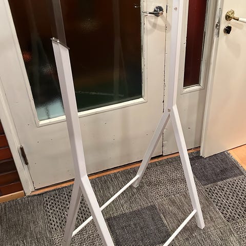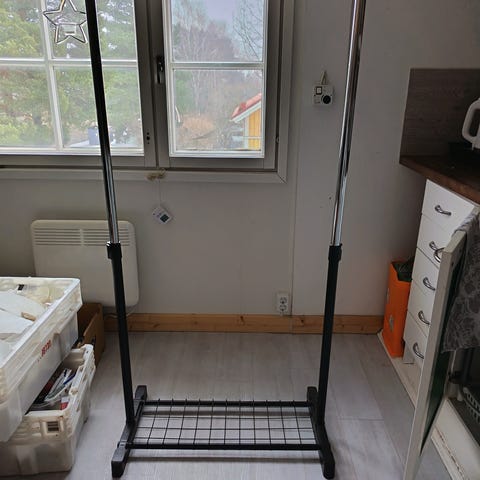 Vaateteline. Korkeutta saa säädettyä. Alla pyörät, joten helppo siirtää.
