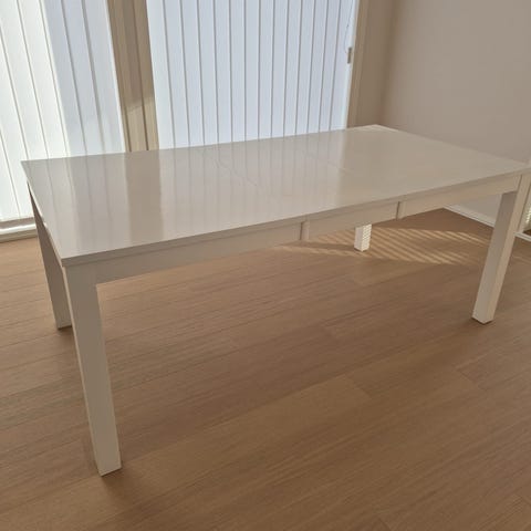 Myydään hyvä kuntoinen valkoinen pöytä. Pientä käytön jälkeä löytyy. Leveys 90cm, pituus 160cm, korkeus 75cm. Vain haku