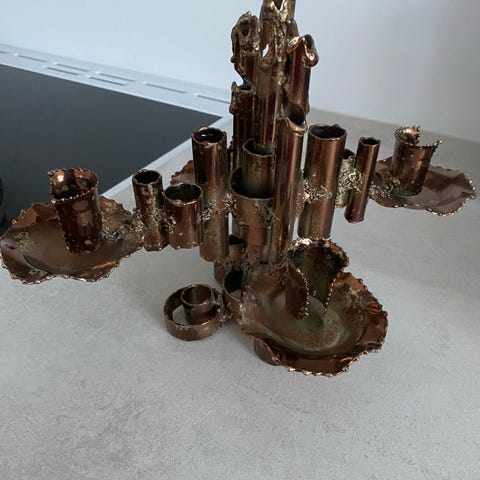Maresa-merkkisen Suomalaisen valmistajan valmistama vintage-kynttilänjalka, joka on valmistettu kuparista.