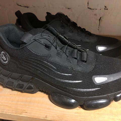 Sievi turvakengät, koko 40. Väriltään mustat, valkoisilla nauhoilla ja pohjilla. Matala, tennarimainen malli, nauhakiinnitys.