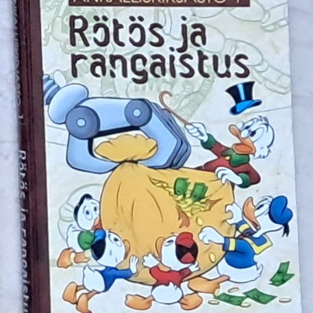 Myynnissä 160-sivuinen Aku Ankka -sarjakuvakirja. Teos sisältää muun muassa Carl Barksin klassikkotarinan "Päivä lainvartijana".