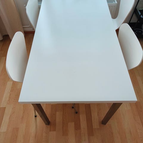 Annetaan ruokapöydän levy. Pöydässä on tällä hetkellä vain kaksi jalkaa, jos ne haluaa mukaan niin hinta on 20€ yhteensä. Pinnalla on hieman naarmuja.