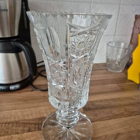 Kaunis kristalliruukku. Käy ruukuksi kukille tai vaikka ruokatarjoiluun. Korkeus 10 cm, alaosan halkaisija 9 cm ja ylhäällä 15 cm.