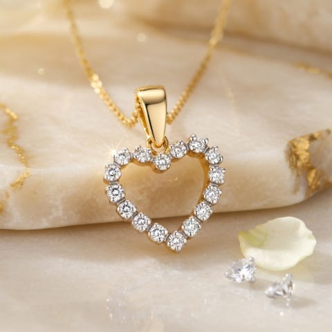 Kultainen sydämen muotoinen riipus timanteilla.