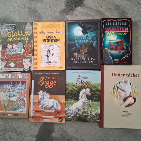 Myydään setti ruotsinkielisiä lasten kirjoja.