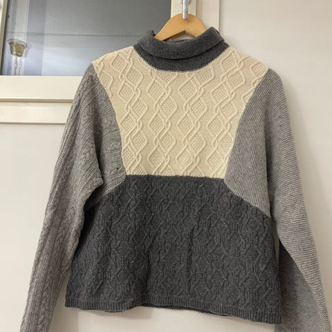 Benetton naisten neulepusero koossa M. Väri beige. Materiaalikoostumus pääosin akryyliä, mukana myös villaa ja alpakanvillaa. Paksu neulos, jossa selässä ja edessä palmikkokuviointia. Sopii arkipukeutumiseen ja kerrospukeutumiseen viileämpiin säihin.