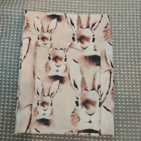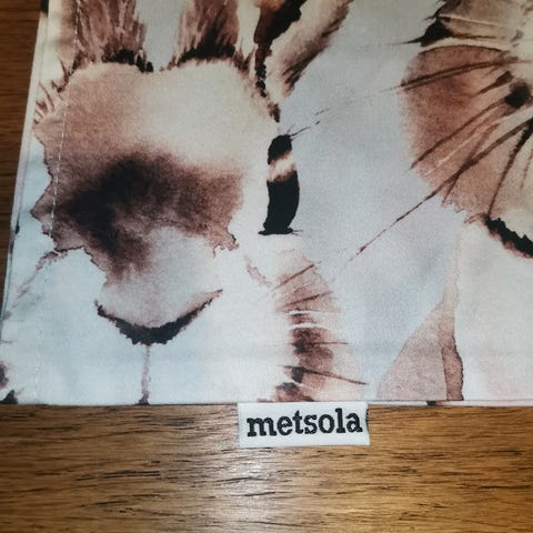 Metsolan pupu kuosin pussilakanasetti. Yhdellä lapsella käytössä ollut, hajustettomalla pesuaineella pesty. Pussilakanan koko 80x120cm, tyynyliina 50x60cm. Koko sopii vauvan peittoon.