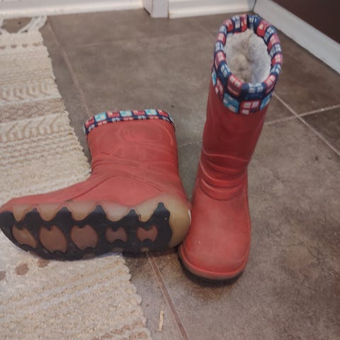 Eivät sovellu vesilätäköihin, sillä molemmat kengät edestä keskeltä läpi asti puhki (sisäkangas mielestäni ehjä, mutta ei todellakaan vedenpitävä). Sopii kuitenkin esim. tallihommiin tms., jossa jalat ei pääse kastumaan. Eläinkoti.