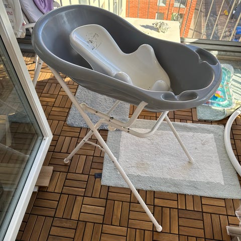 Vauvan kylpyamme harmaata muovia. Ammeessa on vauvan muotoon suunniteltu sisäpinta ja liukuestemäinen alue pohjalla. Reunoissa on paikat mahdollisille lisävarusteille tai veden tyhjentämiselle. Soveltuu vauvan ja pienen lapsen kylvettämiseen sisätiloissa, esimerkiksi kylpyhuoneessa tai suihkutilassa.