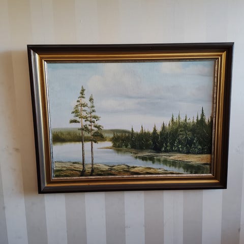 Maisemamaalaus öljyvärimaalaus koristeellisilla kehyksillä