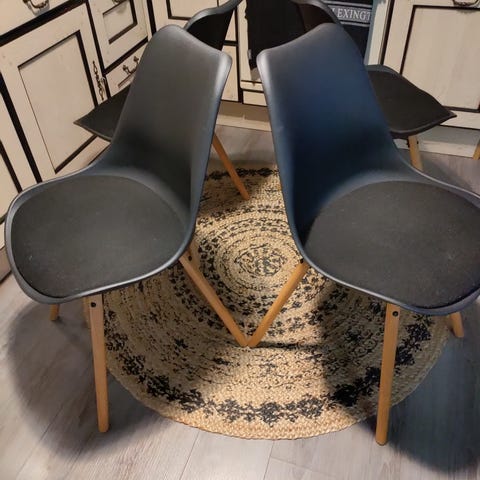 Myydään 8kpl kuvan mukaisia keittiötuoleja. Käytön jälkiä löytyy, mutta tuolit itsessään ehjiä ja hyväkuntoisia. Hinta 30€ koko 8kpl setille tai tarvittaessa voin myydä erikseen 5€/kpl.