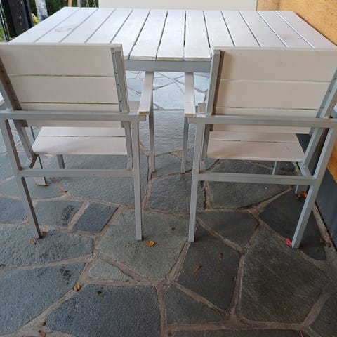 Remontin tieltä uuteen kotiin terassipöytä+4 tuolia.