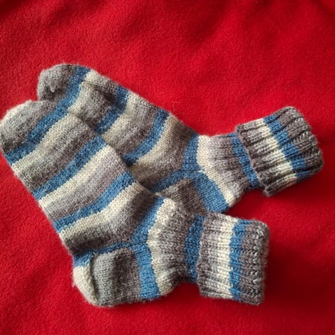 Puna-musta raidalliset itsetehdyt laadukkaat villasukat, koko n.37