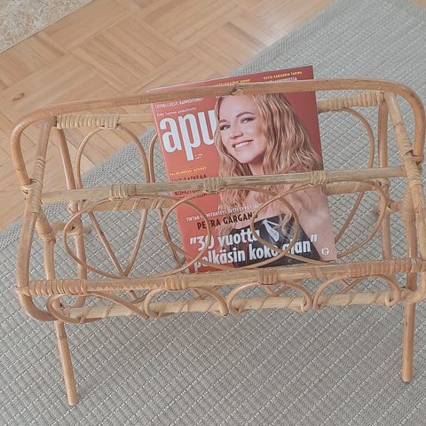 Riippukeinun tai rottinkikeinun teline. 1980 luvulta. Paksua terästä. Painaa enkä noin 25-30kg. Kannattaa hioa ja maalata.