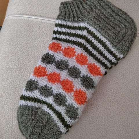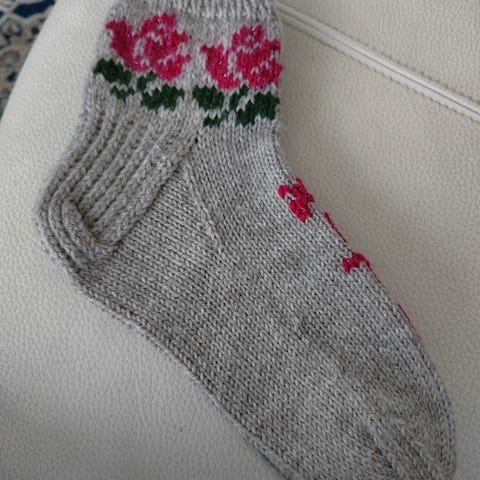 Hempeän väriset nilkkurimalliset villasukat, koko 39-40. Lankana 7-veljestä. Varren pituus kantapään alta varren yläreunaan n. 16 cm.