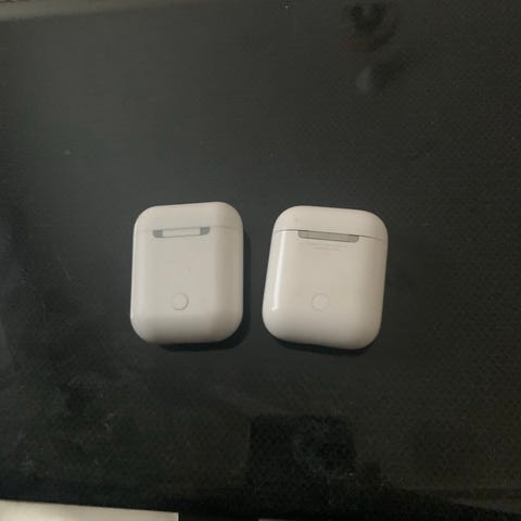 Apple langattomat nappikuulokkeet latauskotelolla. Valkoinen kotelo, jossa LED-merkkivalo edessä ja saranamekanismi takana. Kuulokkeet ovat Bluetooth-yhteensopivat ja tarkoitettu yleiseen musiikin kuunteluun ja puheluihin. Soveltuvat käytettäväksi yhteensopivien älypuhelimien, tablettien ja tietokoneiden kanssa.