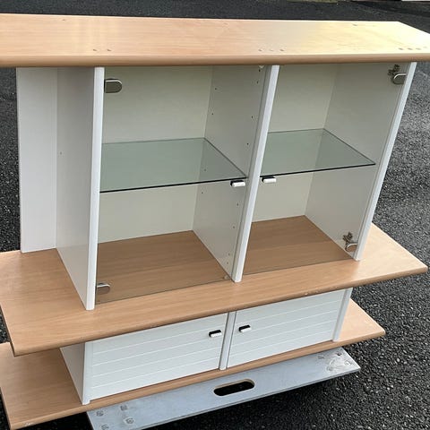 Myydään esittelyvitriini kaappi. Lasitakaseinä. Lasiliukuovet. Lasihyllyt. Liukuoven lukon avain hukassa. Ylhäällä halogenilamput, joista johto katkastu, mutta helppo vaihtaa led lamppuihin. Mitat viimeisessä kuvassa. Pienellä tuunauksella kaappi esineille jotka näkyvät edestä ja takaa. Ala kaapin saa irti ruuveilla. Kuljetus onnistuu toinen sivu alhaalla tai pehmustetulla pohjalla takalasiseinä alhaalla. Lasiliukuovet ja lasihyllyt saa helposti pois kuljetuksen ajaksi. Pääsen antamaan kaapin noin 2h varoitusajalla hakijalle.