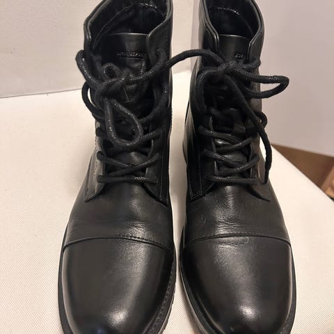 Nahkakengät, jotka osa Rautjärven kansallispukua. Koko vastaa mielestäni 39. Hyvät jalassa. Nahka rasvattu ja suojattu suojasuihkeella juuri. Hyvässä kunnossa ja täysin ehjät - toki ajan patinoimat. Olleet muutamia kertoja käytössä aikoinaan, mutta viimeset vuosikymmenet toimineet lähinnä koristeena. Nouto Kuusankoski myös lähetys onnistuu.