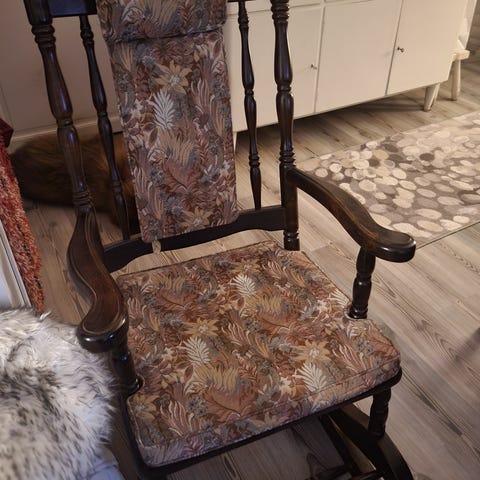 Kaunis hyväkuntoinen keinutuoli + tyyny kuljetuksessa voidaan avustaa!