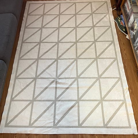 Iso olohuoneen tummanharmaa matto. Kaupan päälle 2kpl makuuhuoneen mattoja 110×60