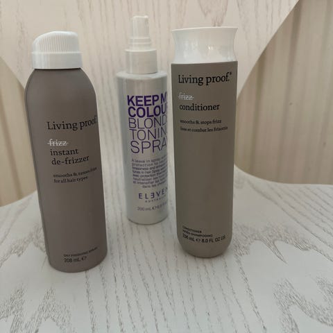 Myydään laadukas tuotepaketti vaaleiden, vaalennettujen tai harmaiden hiusten hoitoon ja keltaisuuden taittoon. Kaikki tuotteet ovat ilmeisesti vegaanisia.