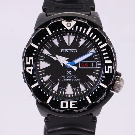 —// KUVAUS //—** Made in Japan **Malli: Seiko Prospex SRPC91J1 Save The Ocean (STO) Turtle Mies Diver automaattikello.Materiaali: Ruostumaton teräs Kellon viisarointiin väri: Gradienttisininen Kellon koko: 44mm ( ilman nuppea )Soveltuvuus: Jopa 21,0 cm.Liike: Seiko 4R36 automaattinen liikeVirranvaraus: 40 tuntiaToiminnot: Aika-alueen pitäminen, hack, manuaali- ja automaattinen käynnistys, käännettävä sukeltajapyörä, hehkuvat osoittimet ja tunnit, ruuveilla suljettava kruunu, päivän ja päivämäärän näyttö, kaksi kieltä päivämääräpyörässä.—// TOIMITUS SISÄLTÖ //—Alkuperäinen laatikko: Kyllä (Seiko valkoinen laatikko)Alkuperäiset paperit: Ei—// TILANNE //—Kannen kulutus: *(*) [pienimuotoista kulumaa kanteen sivuilla]Kannen takakannen kulutus: ** [hiustyppejä ja kevyitä naarmuja]Kruunun lasin kulutus: *(*) [hiusnaarmu 7 o'clock merkinnän lähellä] kellon osoittimet: - Kellon kehän kulutus: *(*) [minimaalinen kulutus kehän insertissä]Kruunu: * [pientä kulumaa kruunussa. 1/2 käännöstä kruunun lukitsemiseksi]Rannekkeen/Leveys (kuten yllä mainittu): ** [Seiko Z22 kumirannekkeet, kulumaa metallisessa pidikkeessä ja soljessa lievillä naarmuilla]TILANNEEN ASKEIN STANDARD:- Ei lainkaan (Paras)* Epäilemättömän pieni** Pieni*** Keskimääräinen**** Raskas***** Vaurioitunut (Worst)
