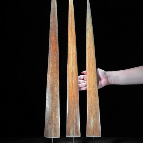 EI MINIMIHINTAA - Häikäisevän upea pari miekkakala-torahampaita on asennettu
