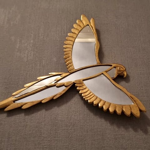 Tämä ylellinen papukaijapeili on todellinen katseenvangitsija, viimeistelty rikkailla kultaisilla sävyillä ja hienostunein yksityiskohdin. Tyylikäs muotoilu lisää välittömästi glamouria ja ripauksen klassista ylellisyyttä mihin tahansa sisustukseen. Täydellinen koristeellinen keskipiste olohuoneessa, käytävässä tai makuuhuoneessa. Ainutlaatuinen kappale boldien ja hienostuneiden sisustusten ystäville.45x25x4cm - uusi tuoteTämä Xclusive Item lähetetään erittäin hyvin pakattuna. Lisäksi pakkaukseen laitetaan herkkä teippi, ja lähetyksen jälkeen saat seurantakoodin, jolla voit seurata pakettiasi.