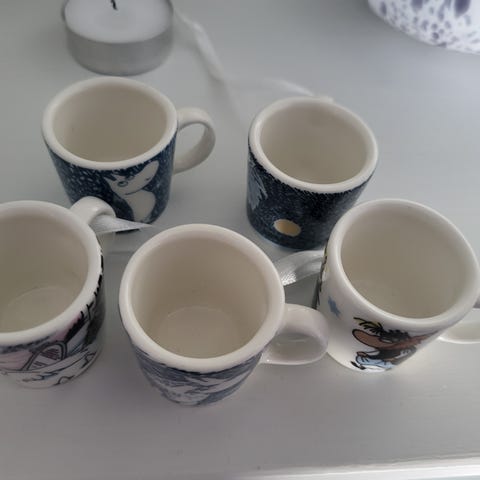 Perheenjäsenen keräilyinnon lopahdettua laitan kuvien muumimukit myyntiin yhteishintaan. Joukossa 2 samalaista mukia. Viimeinen lohikäärme - mukissa on tarra, muissa ei ole. Katso kuvat. Toki voit myös tehdä tarjouksen.