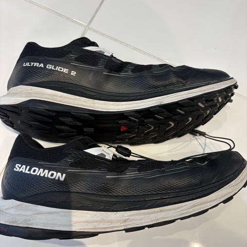 Salomon juoksukengät, koko 45. Väri pääosin valkoinen, punaisilla ja keltaisilla yksityiskohdilla sekä vaaleansinisellä kantalenkillä. Päällinen on verkkokangasta ja synteettistä materiaalia. Nauhakiinnitys pikanyörityksellä. Pohjassa kuvioitu ulkopohja juoksuun ja lenkkeilyyn. Sisäpohjassa Ortholite Impressions -pohjallinen. Sopivat juoksuun ja yleiseen liikuntaan.