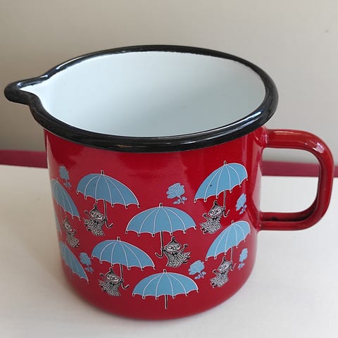 Muumi ,Muumilaakso kannu 0,8l, Muurla-2012-2015 / Uusi. Muurlan hiiliteräksestä valmistettujen muumikannujen pinnassa on kaksinkertainen emalointi. Ei enää tuotannossa. Harvoin saatavilla. Keräilyyn, koristeeksi , käyttöön, lahjaksi. Edullisesti