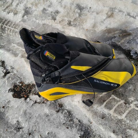 Karhu Spectra perinteisen tyylin sukset, pituus 190 cm. Suksissa on valmiiksi asennetut Salomon SNS-siteet. Väritys keltainen-oranssi kuviointi. Soveltuvat perinteiseen hiihtoon ladulla. Sopii noin 60-70 kg:n painoiselle hiihtäjälle. Siteisiin sopivat monot myös myynnissä (42-43). Kuljetus Porvoon alueella järjestyy pientä lisämaksua vastaan. Jos hinta tuntuu kalliilta, tee tarjous :)