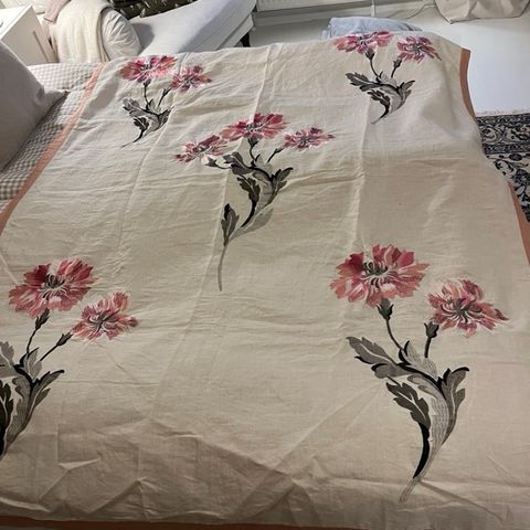 Carcel-merkin silkkinen ruskea-sininen päiväpeitto. Carcel on jo toimintansa lopettanut tanskalainen vaatemerkki, joka työllisti thaimaalaisia naisvankeja. Tämän olen ostanut aikanaan Lokalin joulumyyjäisistä. Värit ovat toisella puolella toisin päin. Mitat ovat 2 m x 2,4 m. Hyvässä kunnossa, joitain jälkiä löysin, joista kuvat.