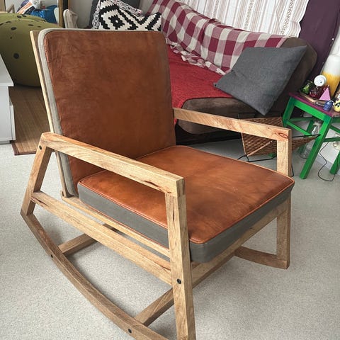 Colmio Woodpecker siro, pieneen tilaan sopiva keinutuoli lakattua koivua. Käytössä ollut, mutta hyvin kaunis ja siisti.