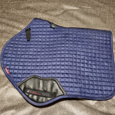 LeMieux Loire satulahuopa ja pintelit. Satulahuopa on neliötikattu, päältä beigen ja sisältä tumman sävyinen. Reunoissa on sävyyn sopiva kanttaus ja satulan alla lisävahvike. Mukana tulee neljän kappaleen pakkaus beigen sävyisiä pinteleitä. Sopii ratsastuskäyttöön hevosen satulan alle ja jalkojen tukemiseen pinteleillä. Hyväkunto