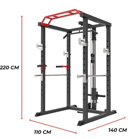 Kotikuntosaliin kyykky/mave-räkki. Ostettu Netraudasta vajaa vuosi sitten. Valmistajan mukaan kestää 200kg. Koko korkeus 220cm x leveys 110 cm ja syvyys 140cm.