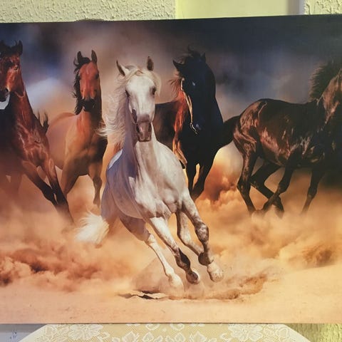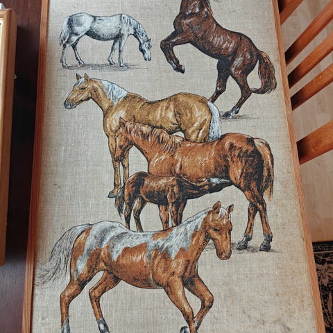 Hyväkuntoinen hevostaulu uuteen kotiin. Ollut tytön huoneessa seinällä, enää ei sovi väriltään meille.
