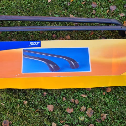 Brio alumiini 120cm kattotelineet peugeot 307:ssa olleet. Avaimet tallessa.