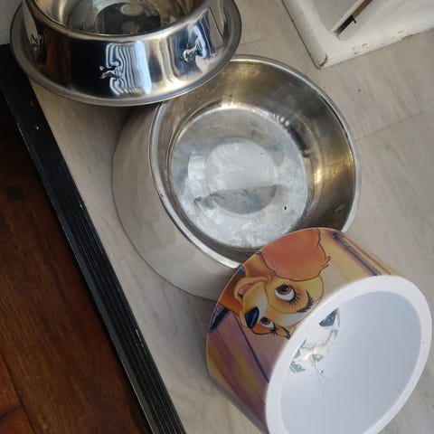 Little Bigger koiran ruokakuppi, jossa irrotettava teräskulho ja muovinen ulkokuori. Halkaisija noin 21 cm ja syvyys noin 7 cm. Ulkokuori on beige kuvioinnilla, sisäosa ruostumatonta terästä. Soveltuu koiran ruualle tai vedelle. Muoviosassa merkintä, että tuote ei ole mikronkestävä, mutta se on konepesun kestävä.