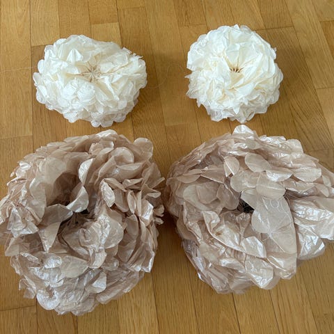 Annetaan paperikassillinen henkareita, muovisia, osa puisia, löytyy myös hame-/housuhenkareita.