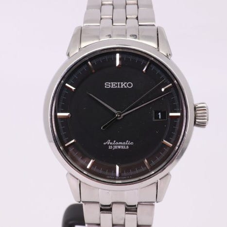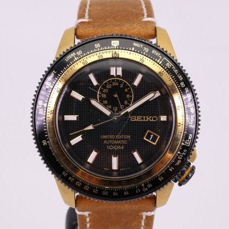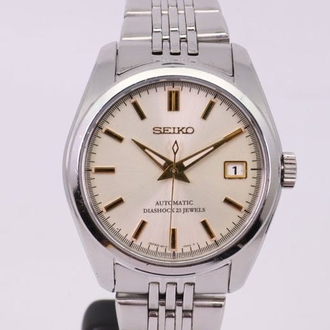 —// INTRO //—** Made in Japan ** *** RARE MODEL *** ** SARB038 is known as the "BABY GS". It resembles the simplistic design of the Grand Seiko Sports Model. **—// DESCRIPTION //—Model: Seiko JDM Spirit SARB038 "Baby GS" Gold Dial Men's Automatic Sports WatchMaterial: Stainless SteelDial Color: GoldDial Size: 38mm (without crown)Fit: Up to 19.0cm wrist. Movement: Seiko 6R15 Automatic movementPower Reserve: 50 hoursFunctions: Time Keeping, hacking, manual and automatic winding, sweeping seconds hand, date display, luminous hands and hour indexes—// DELIVERY CONTENTS //—Original Box: Yes [Seiko Travel Pouch as shown in the photo]Original Papers: No—// CONDITION //—Wear on Case: **(*) [Wear on the case with light scratches. Please refer to pictures for condition]Wear on Caseback: ** [minor hairlines around display caseback.]Wear on Crystal: * [Sapphire crystal top. With minor wear]Wear on Dial: -Wear on Hands: -Wear on Bezel: *** [Color wear off. With visible scratches]Wear on Crown: ** [with hairlines and light scratches]Wear on Bracelet or Strap (Fitting stated above) : ** [Aftermarket leather straps, with aftermarket metal buckle. Visible wear on the straps and buckle]Wear on extra straps: - [aftermarket black leather straps with aftermarket metal buckle, fit up to 18-19cm wrist.]// CONDITION RATING STANDARD //- None (Best)* Insignificant** Minor*** Medium**** Heavy***** Damaged (Worst) (*) half star / In-between condition — // OVERALL RATING //—RATING: B+RATING GUIDELINE:N - As new without any signs of wear, or unworn.S - In Near Mint Condition, with minimal signs of wear. A+ - Very good condition, worn with little signs of wear. A - In good condition with light signs of wear or scratches.B+ - In fair condition with obvious signs of wear or scratches. B - In poor condition with heavy signs of wear or scratches. V - more than 20 years old and In vintage condition with obvious signs of wear and scratches. ND - In salvage condition, without function or in need of service. Might be missing some parts. —// SHIPPING METHOD //—-SERVICED BY: FedEx Economy or equivalent—[[[ NOTES TO CUSTOMERS ]]]—[PHOTOS]- All photos are not retouched (except for serial numbers hidden for security reason). Any defects not mentioned in the description but visible in the pictures will be considered as described. Pictures speak a thousand words, so we kindly ask you to look at the pictures carefully before bidding as they form an integral part of the description. I value my relation with customers so I do not want to become your disappointment when items is received with undesirable results.[ACCURACY]- Accuracy is tested on every watch at horizontal position (dial face up) at fully wounded power reserve and is deemed satisfactory for keeping time before sending out of our shop. Some factors which might affect accuracy include length of time worn on the wrist, arm movement, and tension on the power spring. Watches that are more than 10 years old might experience a larger accuracy variance and inconsistency because of mechanical wear.[AUTHENTICITY]- All watches I sold are authentic. I try to label all aftermarket parts which I can identify and at the best of my knowledge. Please evaluate the item accordingly to the pictures as they are taken from the actual item you will be receiving. Written description is only for auxiliary purpose when pictures cannot show the defect perfectly. (e