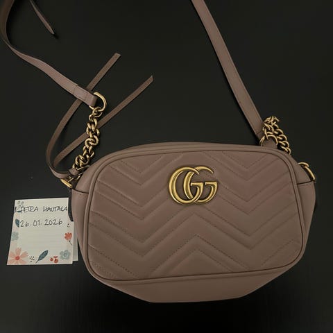 Gucci Marmont Pouch on tyylikäs käytetty laukku, joka on valmistettu denimistä ikonisine kultaisine koristeineen.Se on erittäin kauniissa vintage-kunnossa: sisäpuoli on hyvässä kunnossa ja kulmat ovat ehjät (katso kuvat)Tämän pussukan kompaktin koon 17 x 11 x 6 cm ansiosta se on täydellinen arjen välttämättömyyksille.Ajaton ja elegantti kappale, jolla on luonnetta.Toimitus:Turvallisesti pakattu, nopea toimitus vakuutuksella ja seurannalla (toimitushinta sisältää vakuutuksen, seurannan ja pakkaamisen)