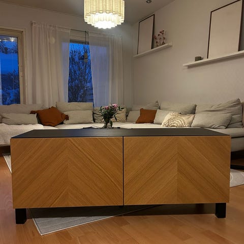 Opiskelijalla käytössä ollut bestå hylly, ollut tv-tasona.On elämää nähnyt.Huomioitu hinnassa