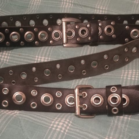 Myydään upea, musta, synteettinen nahkajäljitelmäinen panos- ja niittivyö. Niitit ja panokset ovat nikkeliä. Vyön leveys on viisi senttiä ja ensimmäinen vyön reikä on 74 cm ja viimeinen 88 cm. Vyön koko pituus 94 cm. Voin lähettää maksaessasi toimituskulut .