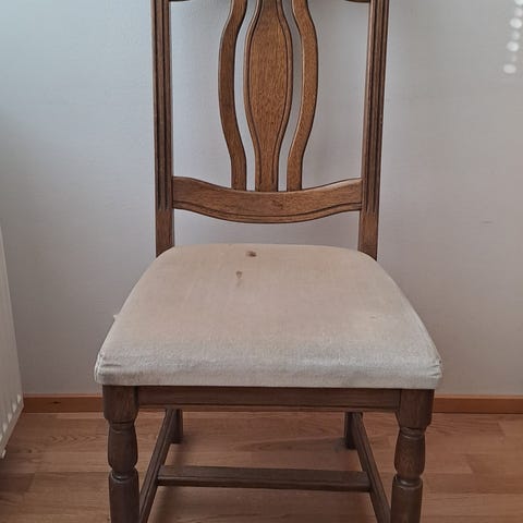 Puinen vihreä tuoli, kuolinpesästä jäänyt. Osat ilmeisesti liimattu kiinni. Vain haku.