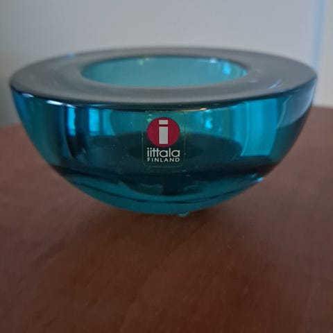 Kaksi Iittalan sinistä lasituikkukuppia. Design Annaleena Hakatie. Korkeus n.4.5cm, halkaisija n.9cm.